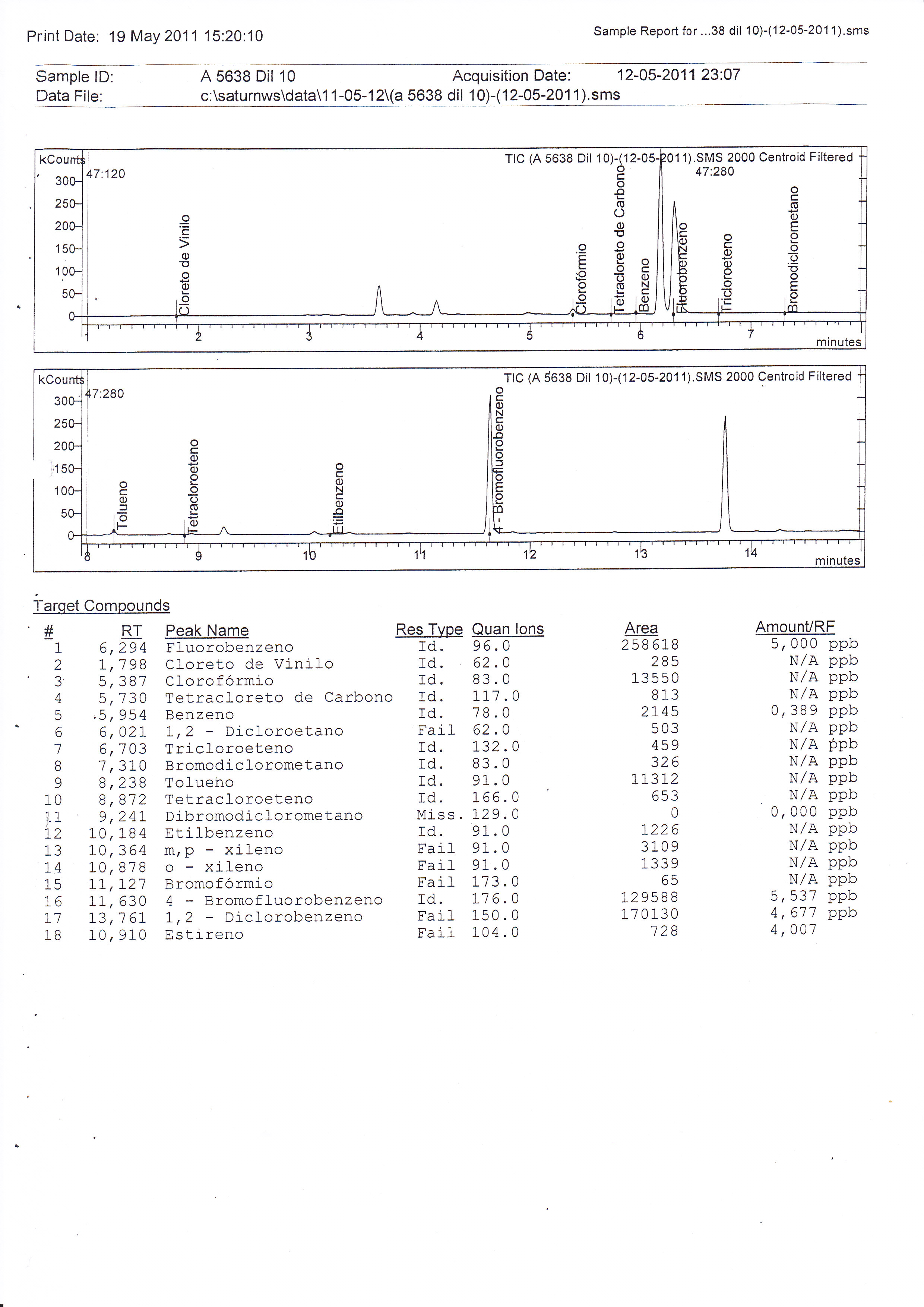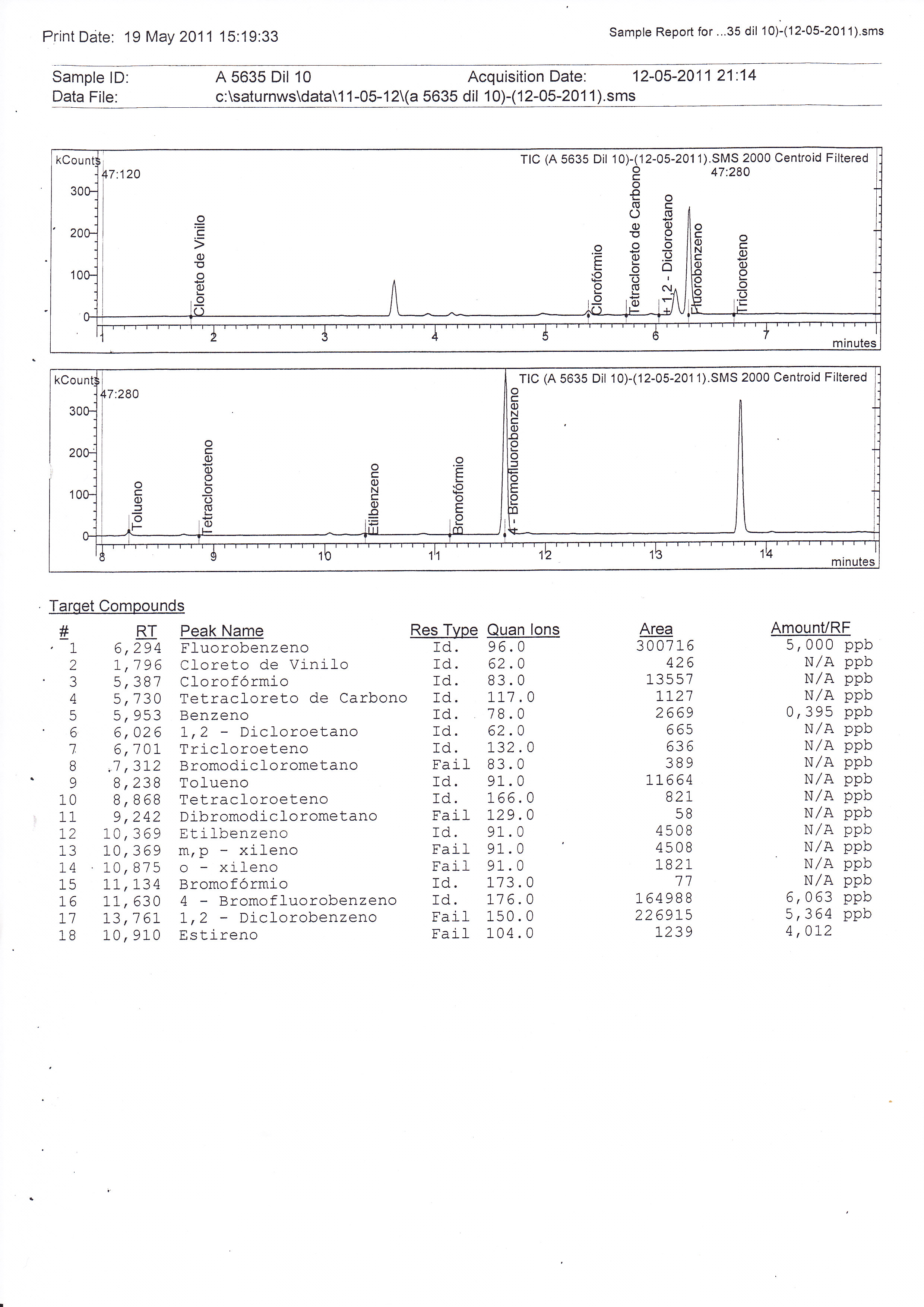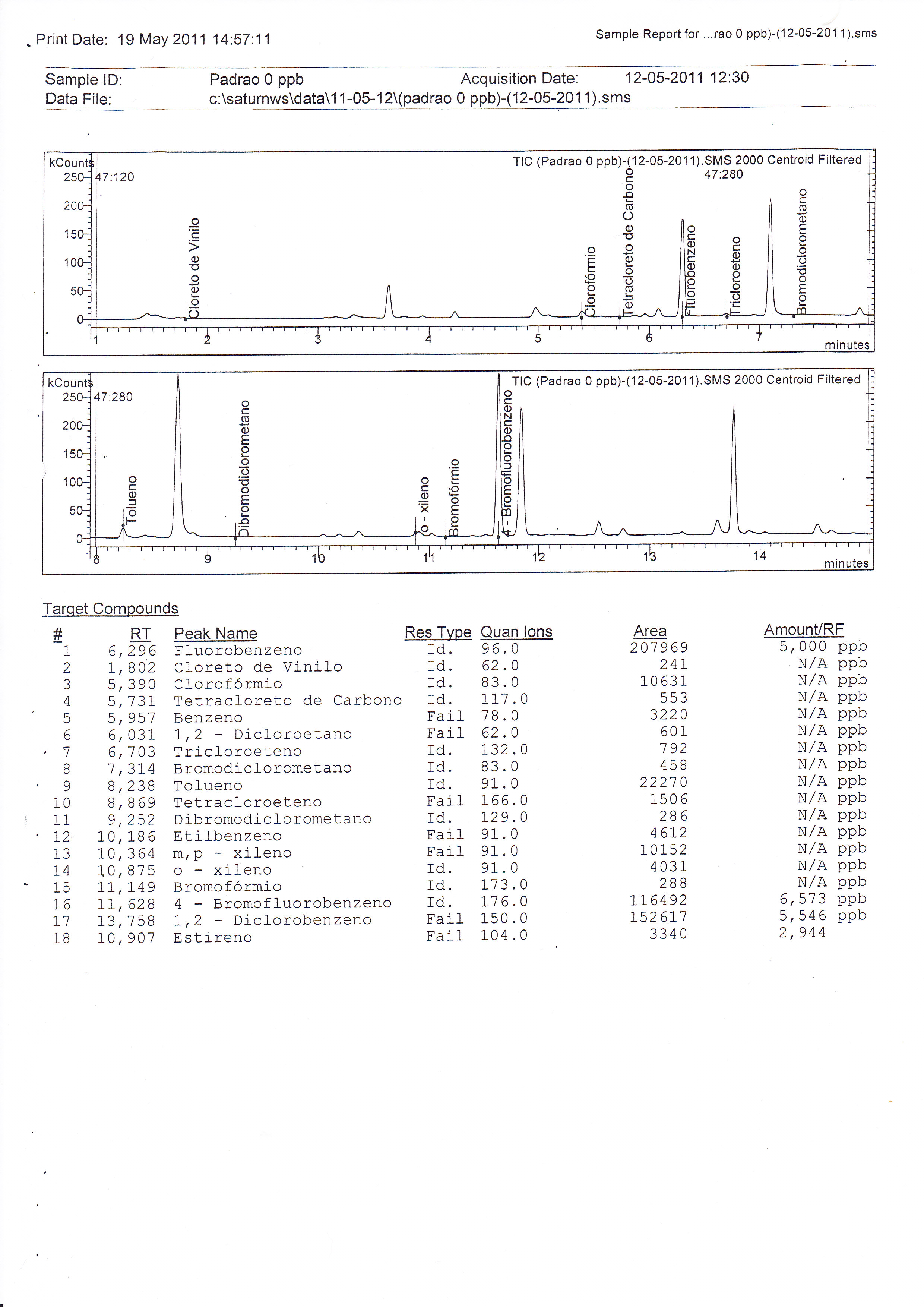 Às diferentes amostras foram adicionados volumes diferentes de hipoclorito de sódio, e ao longo do tempo, foram efectuadas análises para determinar o Cloro Residual, Carência Química de Oxigénio (CQO) e THMs.