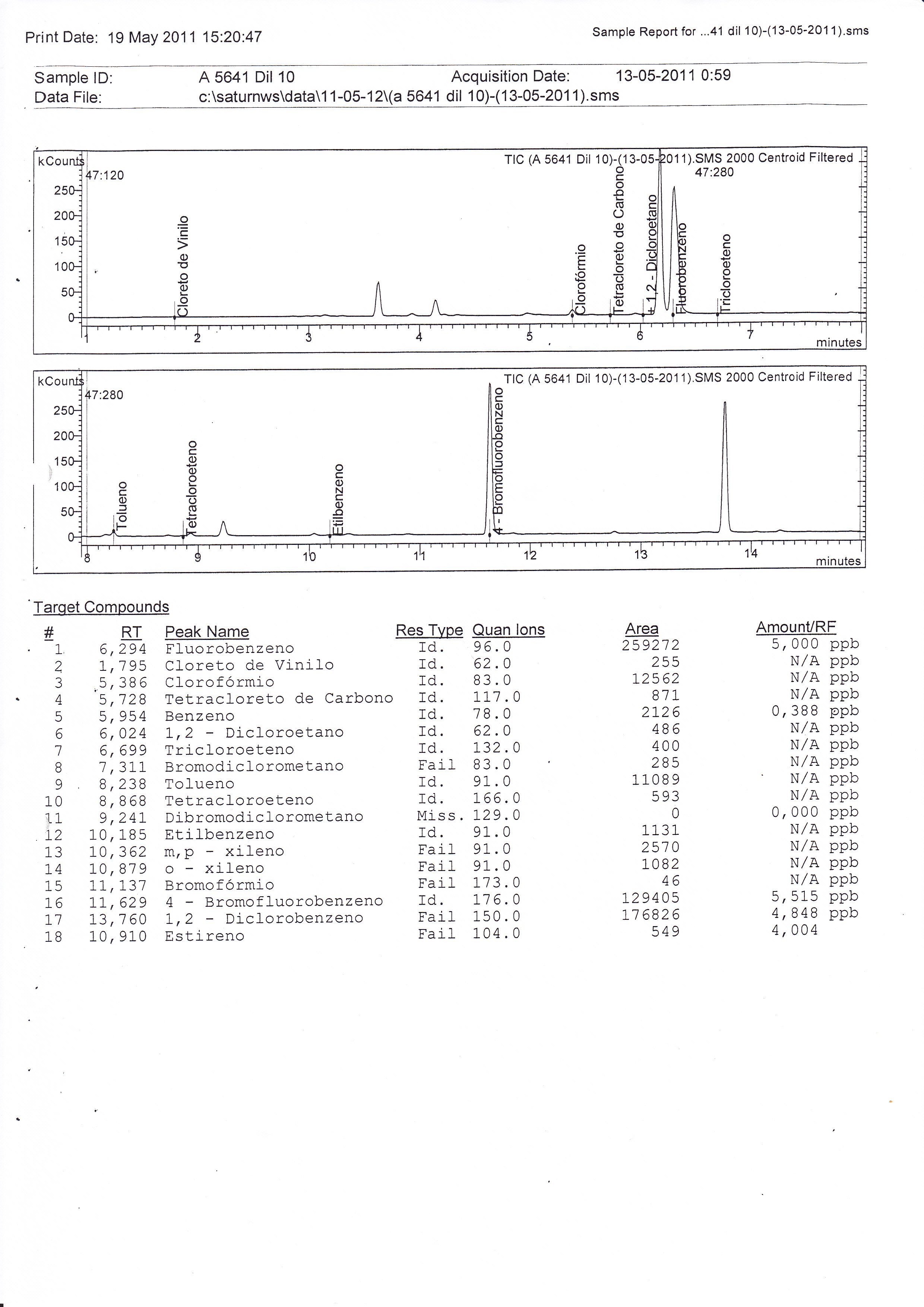 De uma maneira geral, no estudo da variação de cloro das diferentes amostras observou-se uma diminuição da sua concentração de cloro ao longo do tempo, sendo que a remoção mais acentuada ocorreu nas primeiras 12 horas. Os valores de CQO não apresentaram uma variação regular ao longo do tempo mas observou-se o mesmo comportamento para todas as amostras. No estudo realizado para determinar trihalometanos ao longo do tempo verificou-se um aumento nas duas primeiras horas mantendo-se mais ou menos constante até 120 horas. Ainda se observou que a concentração destes compostos aumentava com a adição de hipoclorito de sódio