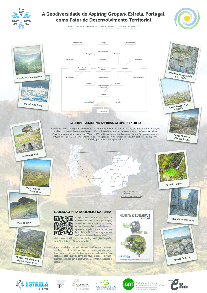 | Citation: | Gomes et al., (2016). "A Geodiversidade do Aspiring Geopark Estrela, Portugal, como Factor de Desenvolvimento Territorial". VI Jornadas APG “A Geologia como fator de competitividade e desenvolvimento económico” 11 novembro 2016, Coimbra, Portugal. |